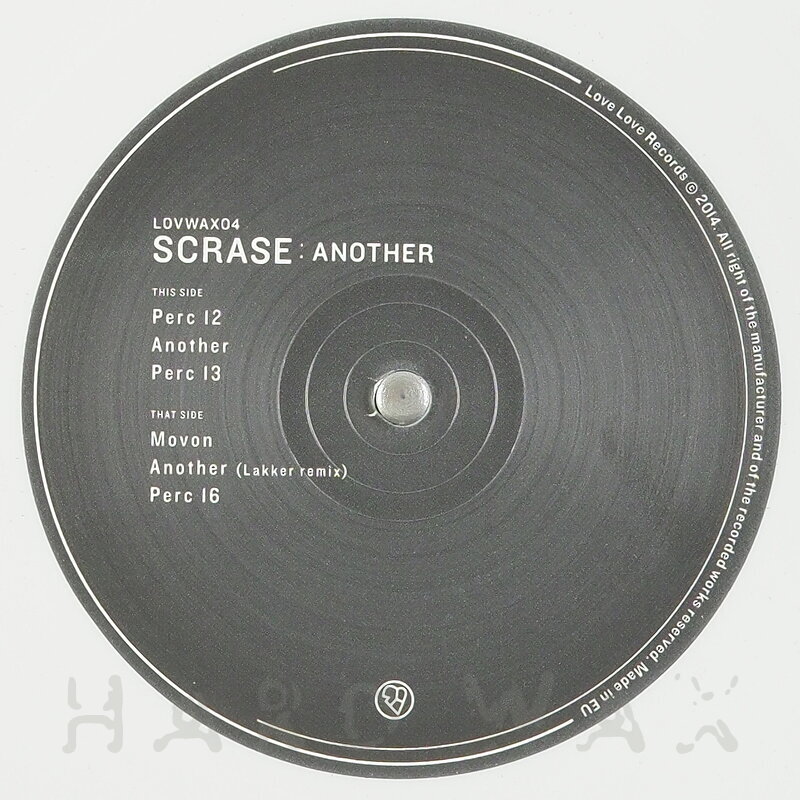 12"—12" € 11Love Love Wax 04Label CatalogScrase: AnotherClassy dubbed out, swinging leftifeld House drifters A1 Perc 12 A2 Another A3 Perc 13 B1 Movon B2 Another (Lakker Remix) B3 Perc 15