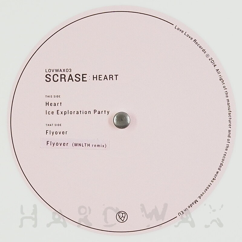 12"—12" € 11Love Love Wax 03Label CatalogScrase: HeartBlue minimalist House / Ambient / Electro jams A1 Heart A2 Ice Exploration Party B1 Flyover B2 Flyover (MNLTH Remix)