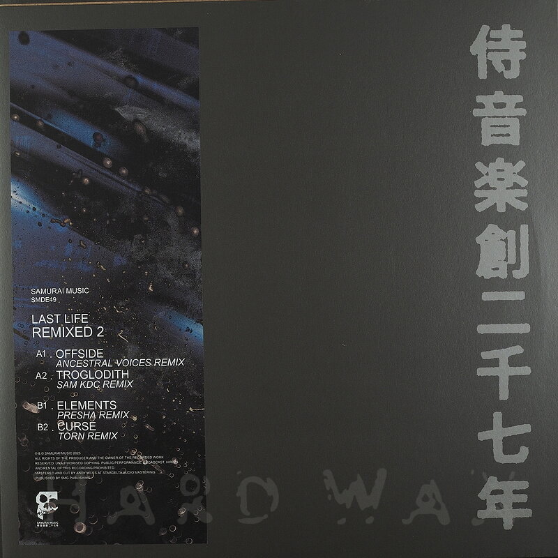 12"MP3AIFF12" € 16Samurai Music DE 049Label CatalogLast Life: Remixed: 2Heavy pressured Drum & Bass remix treatment 01 Offside (Ancestral Voices Remix) 02 Troglodith (Sam KDC Remix) 03 Elements (Presha Remix) 04 Curse (Torn Remix)12"MP3AIFFMP3AIFF4 AIFFs € 74 MP3s € 5Samurai Music SMDE49Last Life: Remixed: 2Heavy pressured Drum & Bass remix treatment Offside (Ancestral Voices Remix)5:50AIFF € 1.75MP3 € 1.25 Troglodith (Sam KDC Remix)7:03AIFF € 1.75MP3 € 1.25 Elements (Presha Remix)7:10AIFF € 1.75MP3 € 1.25 Curse (Torn Remix)6:31AIFF € 1.75MP3 € 1.25
