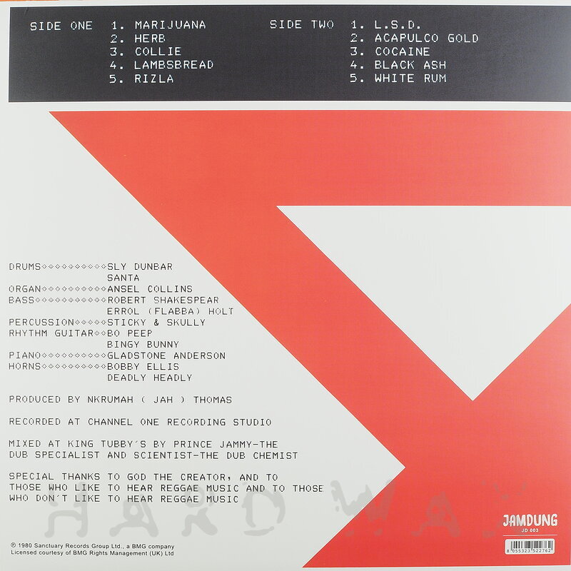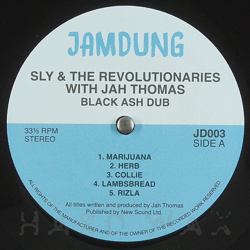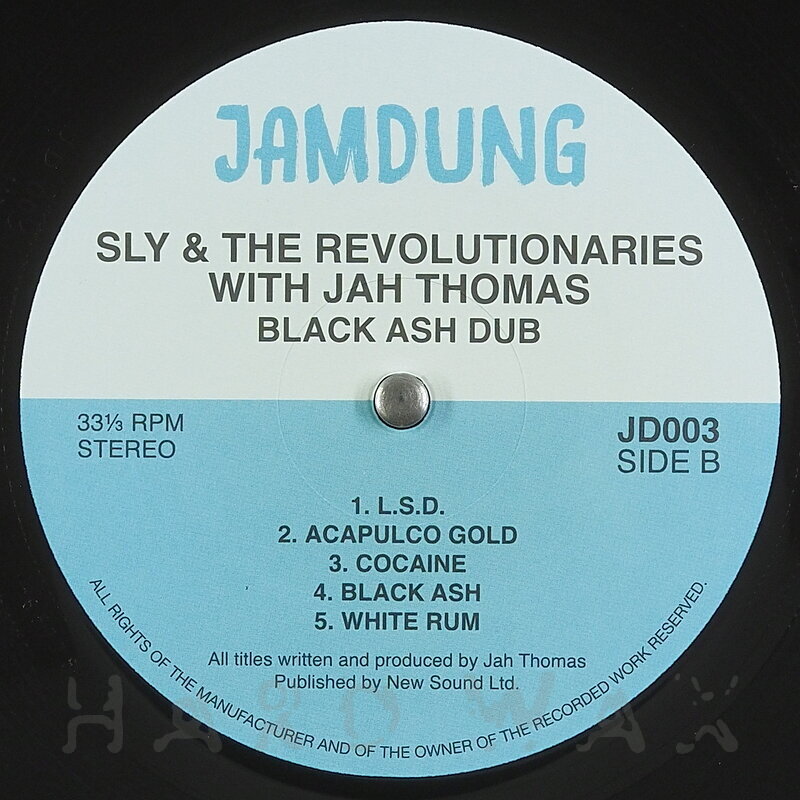 LP—LP € 27Jamdung 003Reggae / A11Sly & The Revolutionaries: Black Ash DubReissue of classic early 80s dub set recorded at Channel One, Jah Thomas on the mic A1 Marijuana A2 Herb A3 Collie A4 Lambsbread A5 Rizla B1 L.S.D. B2 Acapulco Gold B3 Cocaine B4 Black Ash B5 White Rum