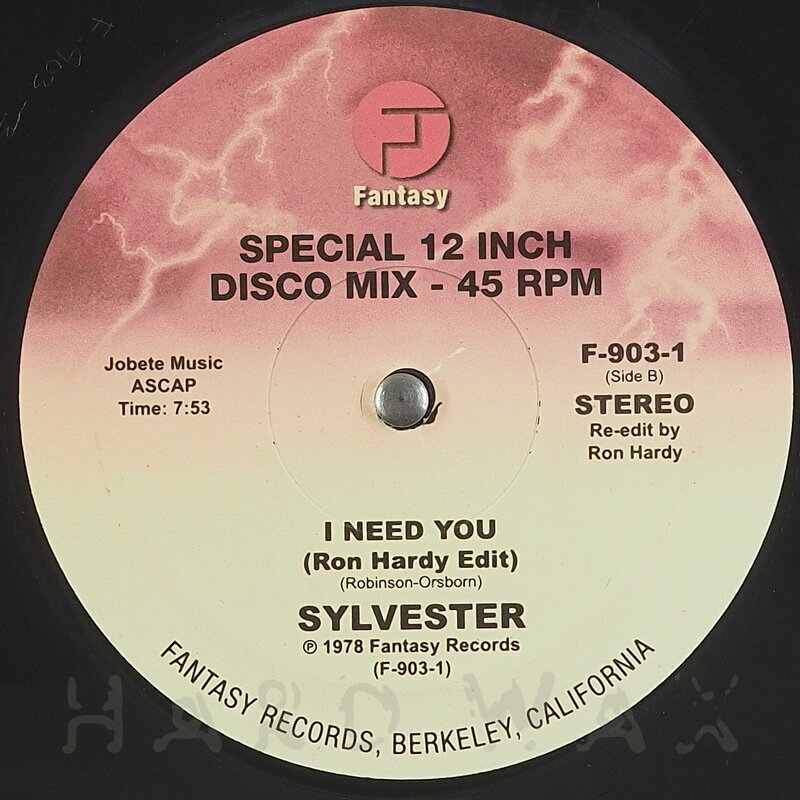 12"—12" € 18Fantasy 903DiscoSylvester: I Need YouRon Hardy edit. Disco classic A1 I Need You B1 I Need You (Ron Hardy Edit)
