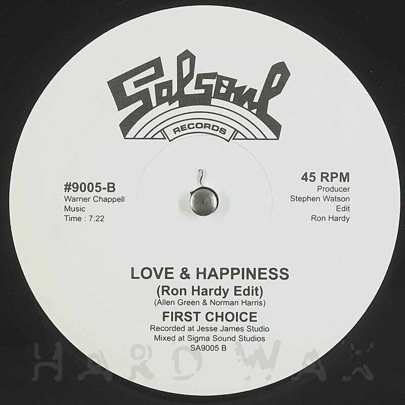 12"—12" € 18Salsoul 9005DiscoFirst Choice: Love & HappinessBrilliant Ron Hardy edit. Disco/early House classic A1 Love & Happiness B1 Love & Happiness (Ron Hardy Edit)