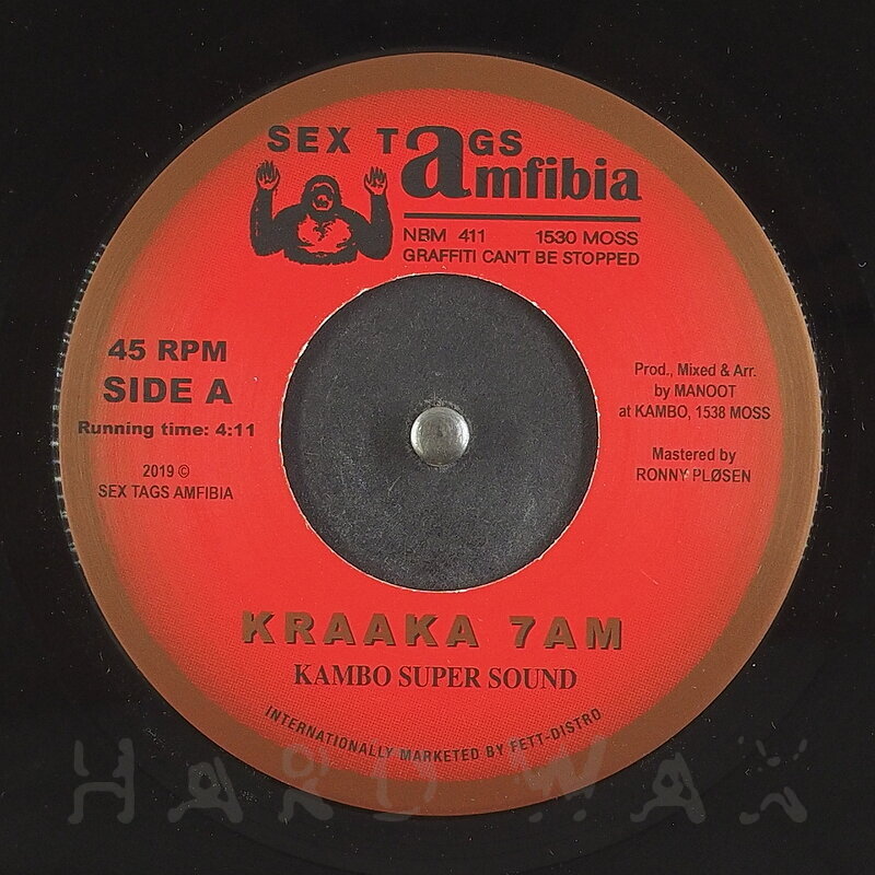 7"—7" € 8Sex Tags Amfibia 30Label CatalogKambo Super Sound: Kraaka 7AMHeavy current steppers fire backed by classy spaced out dub trip on the flip A1 Kraaka 7AM B1 Don Papa meets DJ Sotofett: Moss Dub Fønk