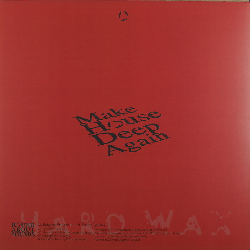 12"— out of stockRoundabout Sounds 021Label CatalogJoe Babylon pres.: All-Hands Volume 2Another brilliant Deep House collection A1 Wbeeza: Flip ShxT A2 Demetrio Giannice: Talk (2024 Re-Dub) B1 Joe Babylon: Adepsis B2 Unknown Detroit: It’s Never Over