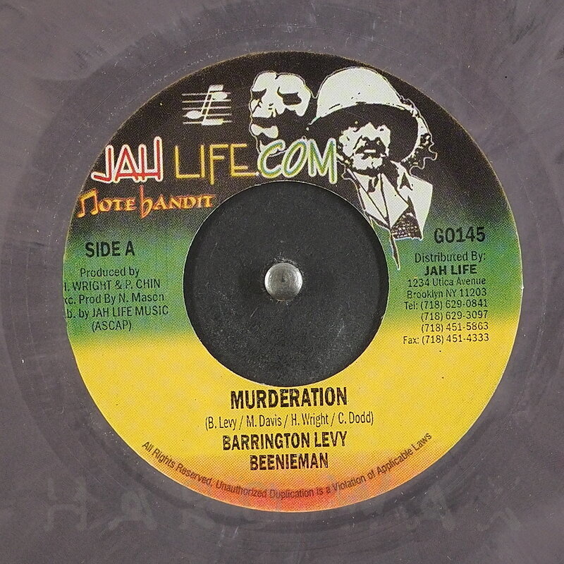 7"— out of stockJah Life Com GO 145Reggae / A35Barrington Levy & Beenie Man: MurderationMurder classic, 90s re-lick pressed on marbled vinyl A1 Murderation B1 Version