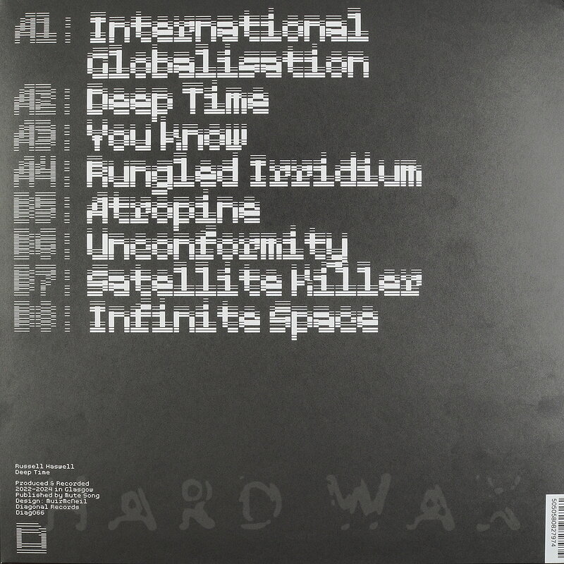 LPMP3AIFFLP € 34Diagonal 066Label CatalogRussell Haswell: Deep TimeSparse, spaced out Techno / Electro explorations A1 International Globalisation A2 Deep Time A3 You Know A4 Rungled Irridium B1 Atropine B2 Unconformity B3 Satellite Killer B4 Infinite SpaceLPMP3AIFFMP3AIFF8 AIFFs € 12.58 MP3s € 9.75Diagonal Records DIAG066Russell Haswell: Deep TimeSparse, spaced out Techno / Electro explorations International Globalisation5:19AIFF € 1.75MP3 € 1.25 Deep Time6:22AIFF € 1.75MP3 € 1.25 You Know3:23AIFF € 1.75MP3 € 1.25 Rungled Irridium2:22AIFF € 1.25MP3 € 1.00 Atropine3:43AIFF € 1.75MP3 € 1.25 Unconformity6:02AIFF € 1.75MP3 € 1.25 Satellite Killer3:03AIFF € 1.75MP3 € 1.25 Infinite Space4:05AIFF € 1.75MP3 € 1.25