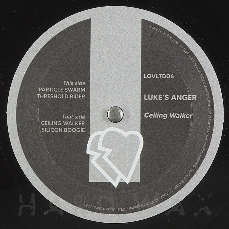 12"— out of stockLove Love Ltd 06Label CatalogLuke’s Anger: Ceiling WalkerPlayful Electro jams A1 Particle Swarm A2 Threshold Rider B1 Ceiling Walker B2 Silicon Boogie