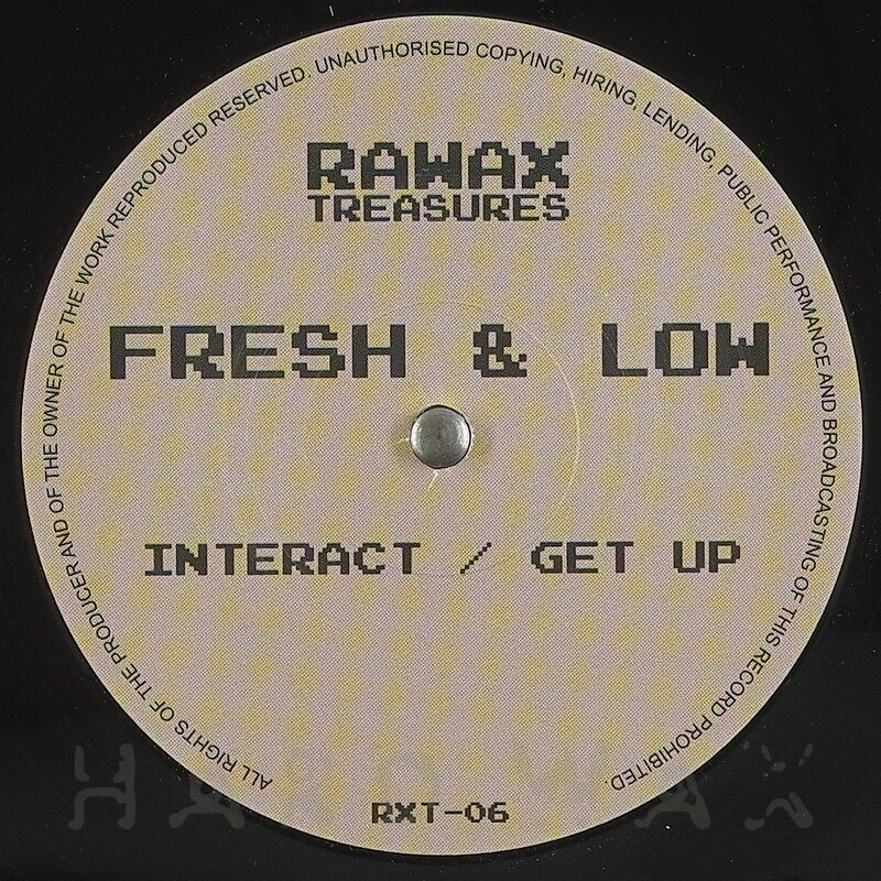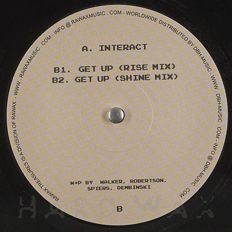 12"—12" € 15.5Rawax RXT 06Label CatalogFresh & Low: InteractReissue of between techy and warm 90s Deep House DJ tools A1 Interact B1 Get Up (Rise Mix) B2 Get Up (Shine Mix)