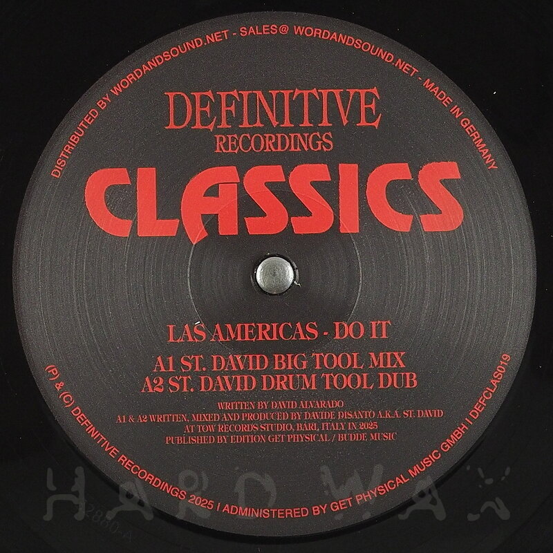 12"—12" € 19Definitive 019Label CatalogLas Americas: Do It (St. David Remixes)Reissue of David Alvarado prod. vocal 90s House classic A1 Do It (St. David Big Tool Mix) A2 Do It (St. DavidDrum Tool Dub) B1 Do It (Original Mix) B2 Do It (Chuck Phulasole Mix)