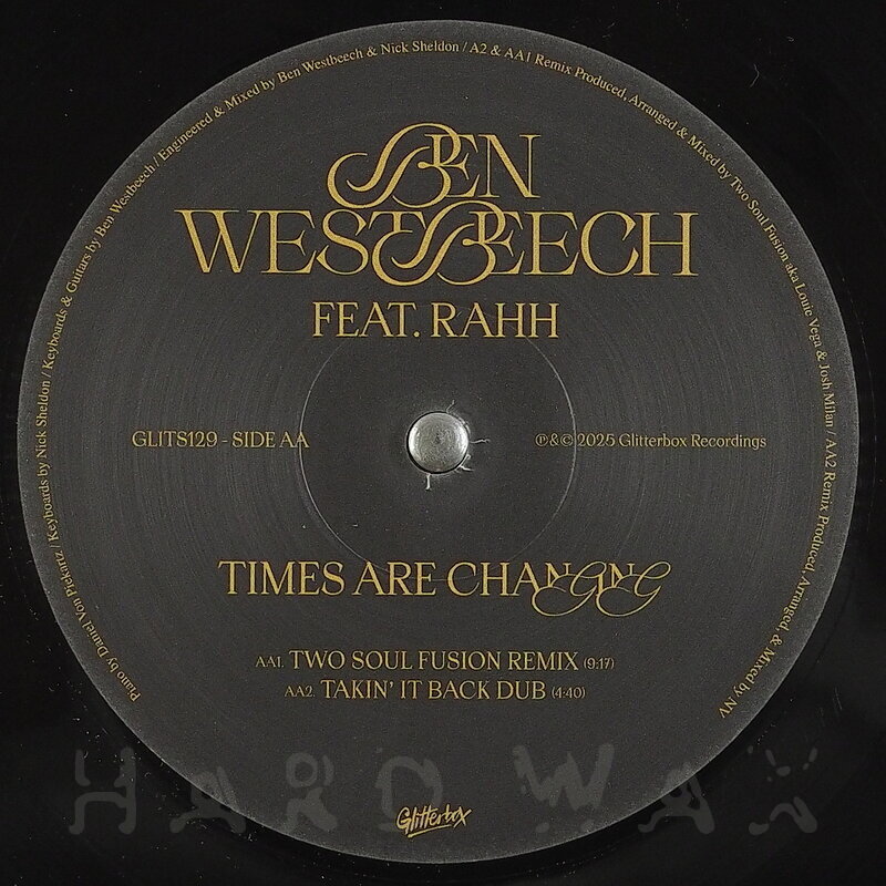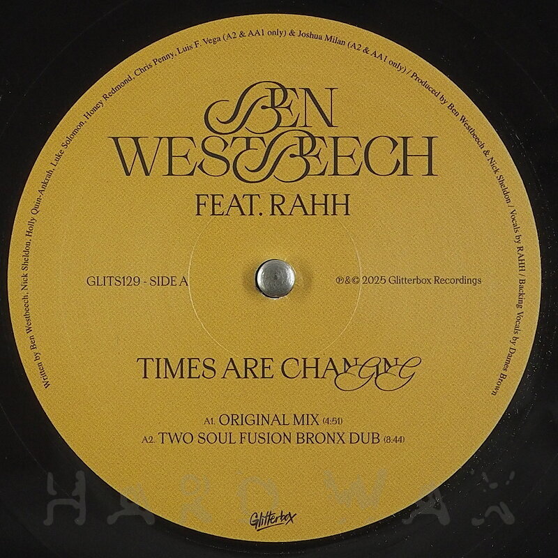 12"—12" € 16Glitterbox 129Label CatalogBen Westbeech ft. RAHH: Times Are ChangingSoulful House dubs A1 Times Are Changing (Original Mix) A2 Times Are Changing (Two Soul Fusion Bronx Dub) B1 Times Are Changing (Two Soul Fusion Remix) B2 Times Are Changing (Takin' It Back Dub)