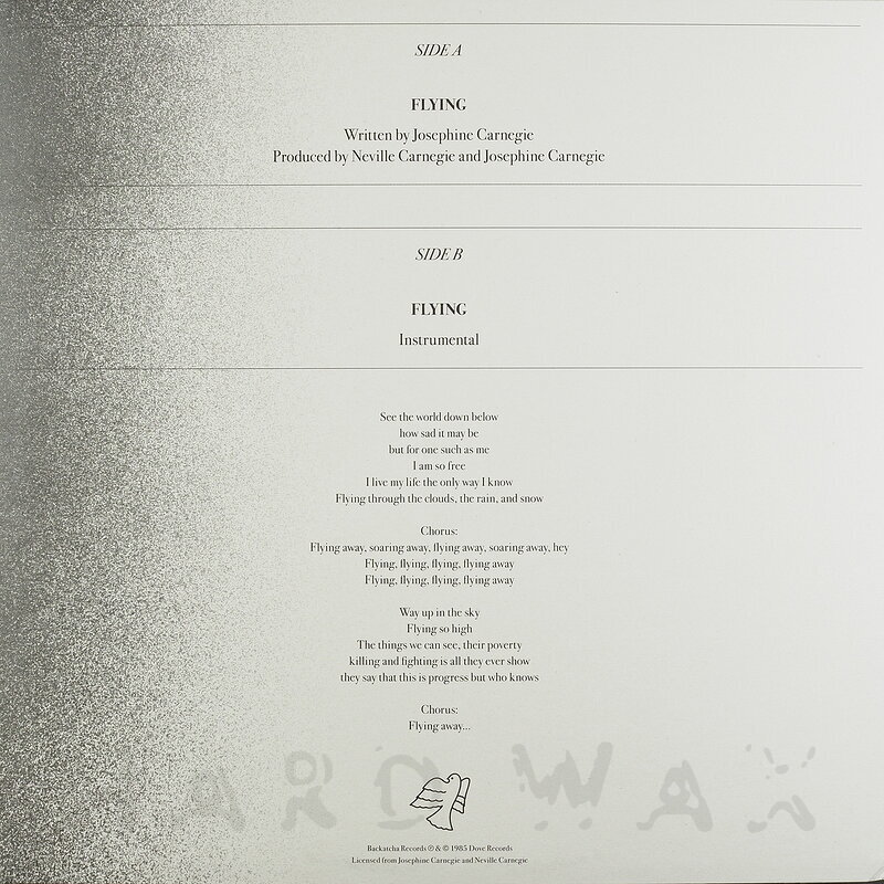 12"—12" € 20Backatcha 095Reggae / C8Jo: FlyingOverdue reissue of outstanding 80s UK Lovers Rock / Synth Pop gem A1 Flying B1 Instrumental