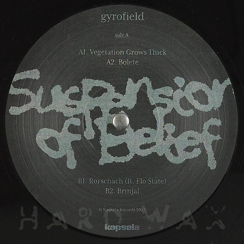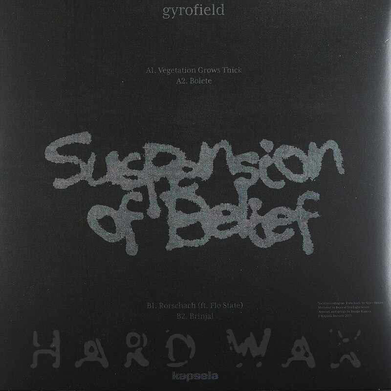 12"—12" € 18Kapsela 003Label CatalogGyrofield: Suspension of BeliefAce fearless Techno-Electronica hybrid EP A1 Vegetation Grows Thick A2 Bolete B1 Rorschach Feat. Flo State B2 Brinjal