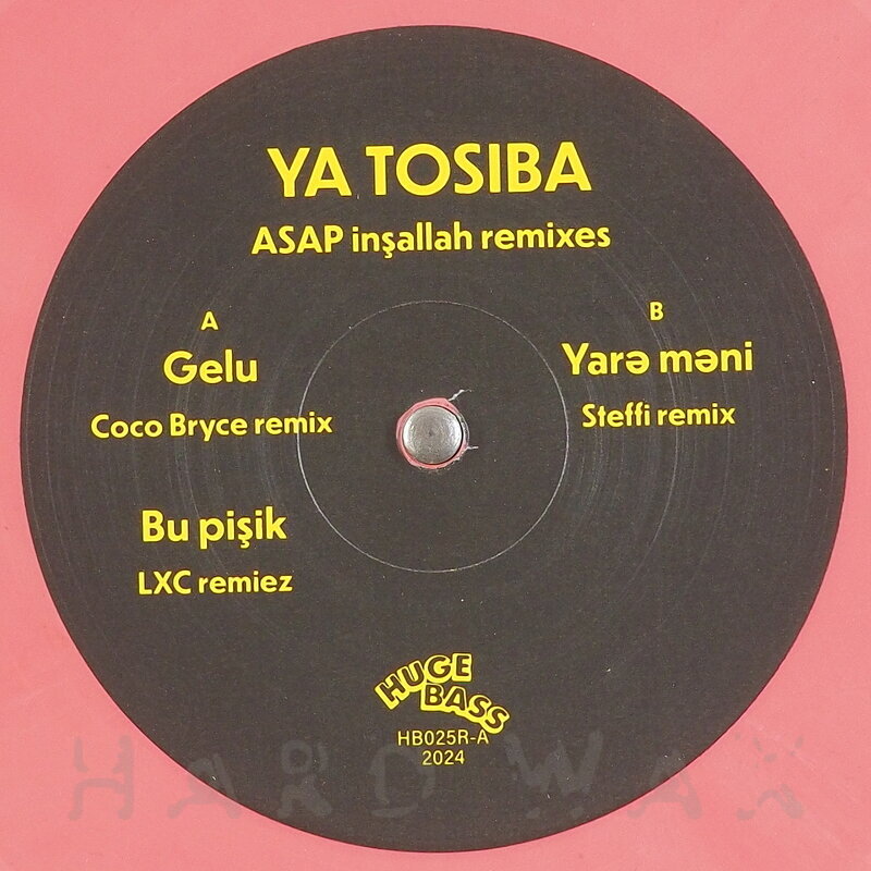 12"—12" € 17.5Huge Bass 025 RLabel CatalogYa Tosiba : ASAP İnşallah RemixesAce dreamy to straight and deep Drum & Bass / Jungle / Techno remix EP A1 Gelu (Coco Bryce Remix) B1 Bu Pişik (LXC Remiez) B2 Yarə Məni (Steffi Remix)