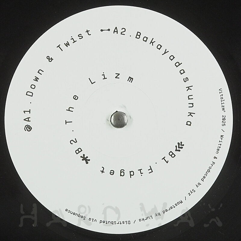 12"—12" € 20Vitalizm 001Label CatalogSyz: VTLZM001Fresh, adventurous & energetic rhythmic UKG / Bass to House hybrid EP A1 Down & Twist A2 Bakayadaskunka B1 Fidget B2 The Lizm