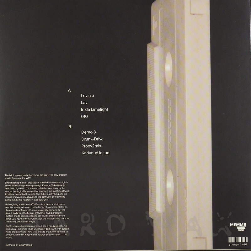 LP—LP € 20Memme Vaev 003Label CatalogLu:k: UntitledVinyl reissue of mid 90s Estonian Breakbeat / Jungle / Drum & Bass cuts A1 Lovin U A2 Lav A3 In Da Limelight A4 010 B1 Demo 3 B2 Drunk - Drive B3 Proov2mix B4 Kadunud Leitud
