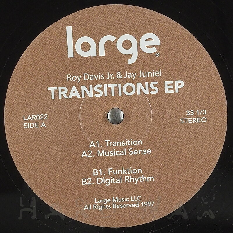 12"—12" € 15Large 022Label CatalogRoy Davis Jr.: TransitionsOriginally released in 1997. Timeless Chicago House A1 Transition A2 Musical Sense B1 Funktion B2 Digital Rhythm