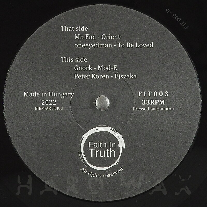 12"—12" € 14Faith In Truth 003Label CatalogVarious Artists: OrientDreamy retroesque Electro / House mini-compilation A1 Mr Fiel: Orient A2 Oneeyedman: To Be Loved B1 Gnork: Mod-E B2 Peter Koren: Éjszaka