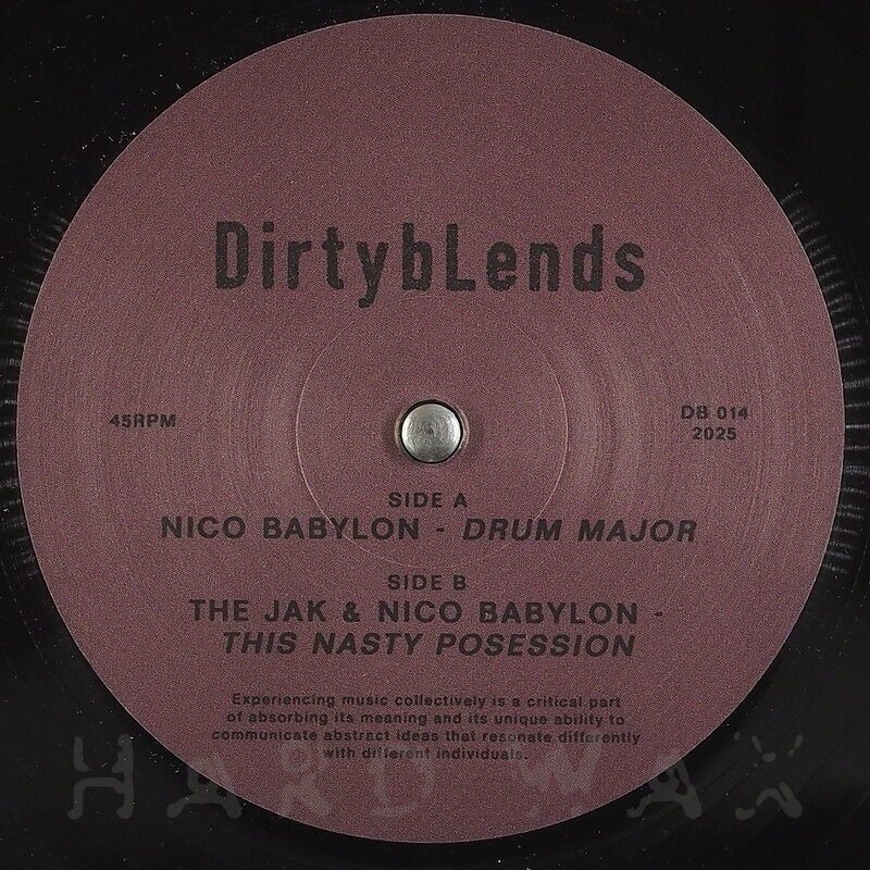 12"—12" € 19Dirty Blends 014Label CatalogNico Babylon & The Jak: Drum MajorChicago schooled, jacking House DJ tools A1 Nico Babylon: Drum Major B1 The Jak & Nico Babylon: This Nasty Possession