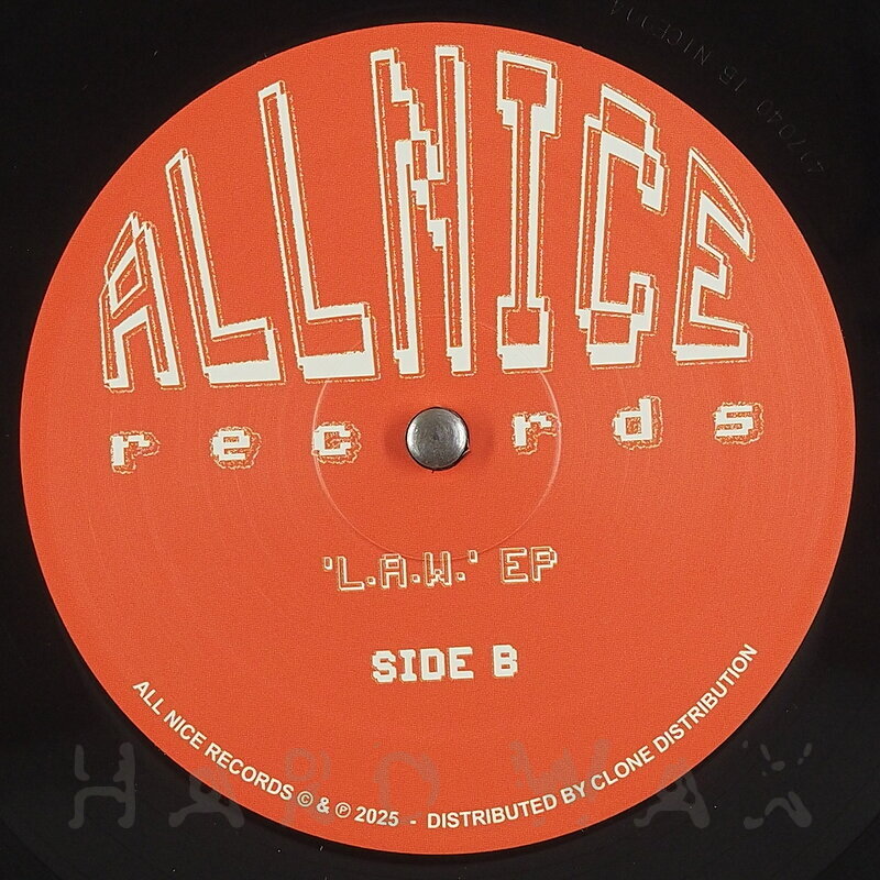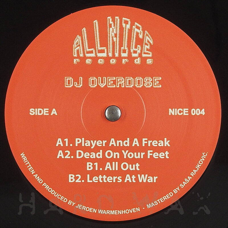 12"—12" € 17All Nice 004Label CatalogDJ Overdose: L.A.W.Intense Electro rhythms A1 Player And A Freak A2 Dead On Your Feet B1 All Out B2 Letters At War