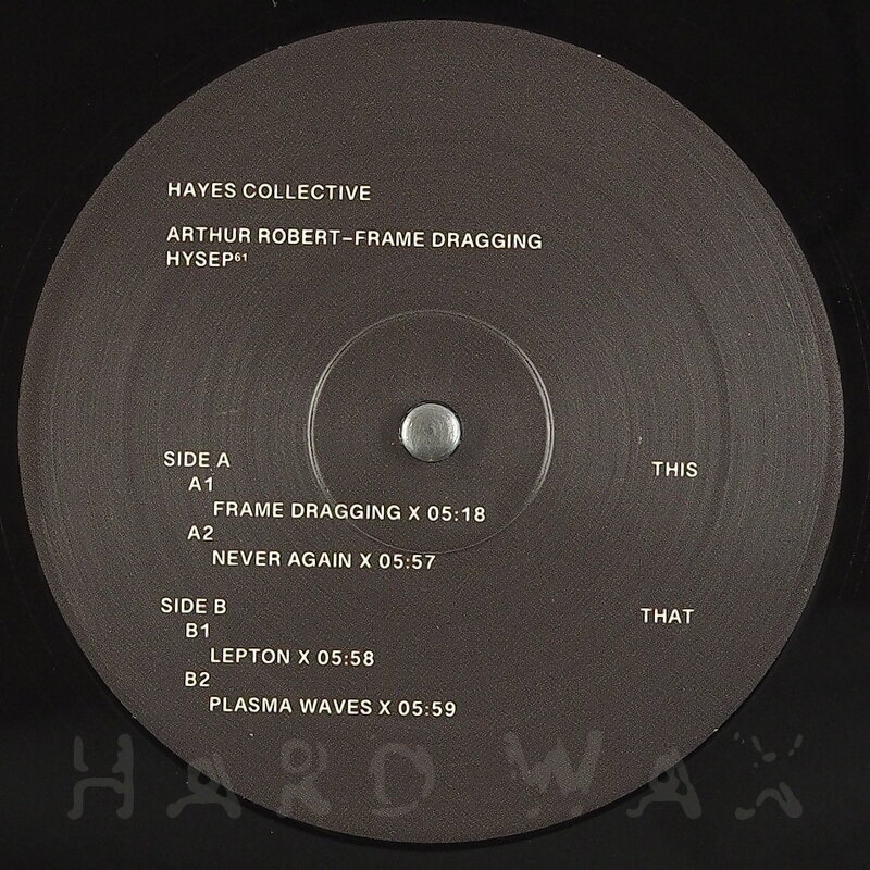 12"MP3AIFF12" € 14.5Hayes EP61Label CatalogArthur Robert: Frame DraggingIntense bleepy, atmospheric Techno tools A1 Frame Dragging A2 Never Again B1 Lepton B2 Plasma Waves12"MP3AIFFMP3AIFF6 AIFFs € 10.56 MP3s € 7.5Hayes HYSEP61Arthur Robert: Frame DraggingIntense bleepy, atmospheric Techno tools Frame Dragging5:09AIFF € 1.75MP3 € 1.25 Never Again5:58AIFF € 1.75MP3 € 1.25 Lepton5:58AIFF € 1.75MP3 € 1.25 Plasma Waves6:00AIFF € 1.75MP3 € 1.25 Ignition6:01AIFF € 1.75MP3 € 1.25 Event Horizon6:06AIFF € 1.75MP3 € 1.25