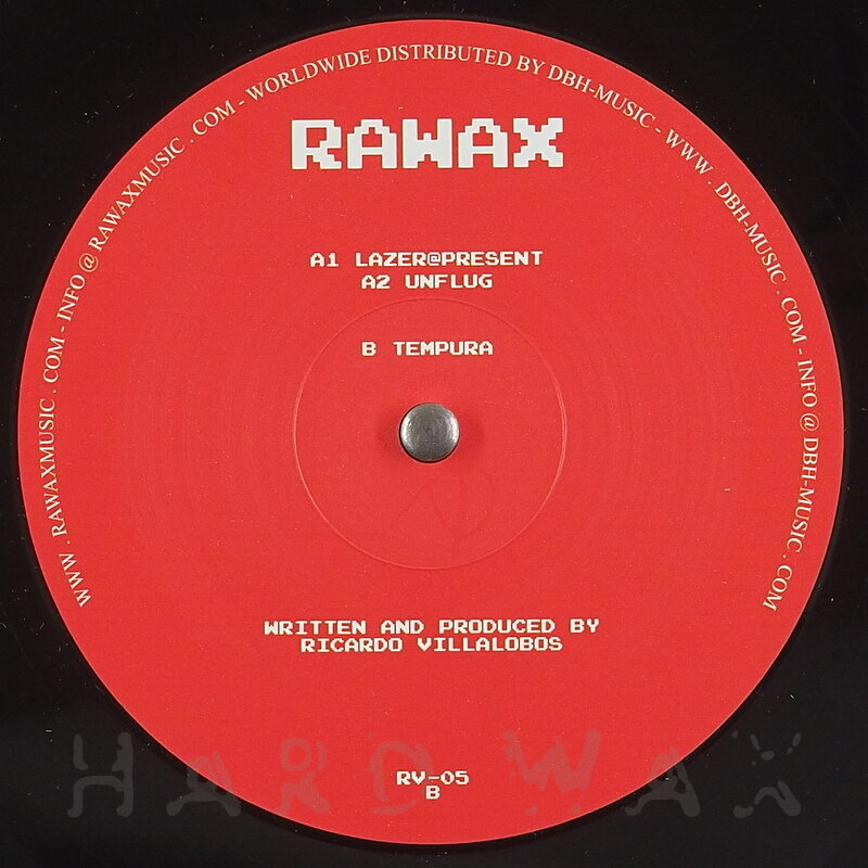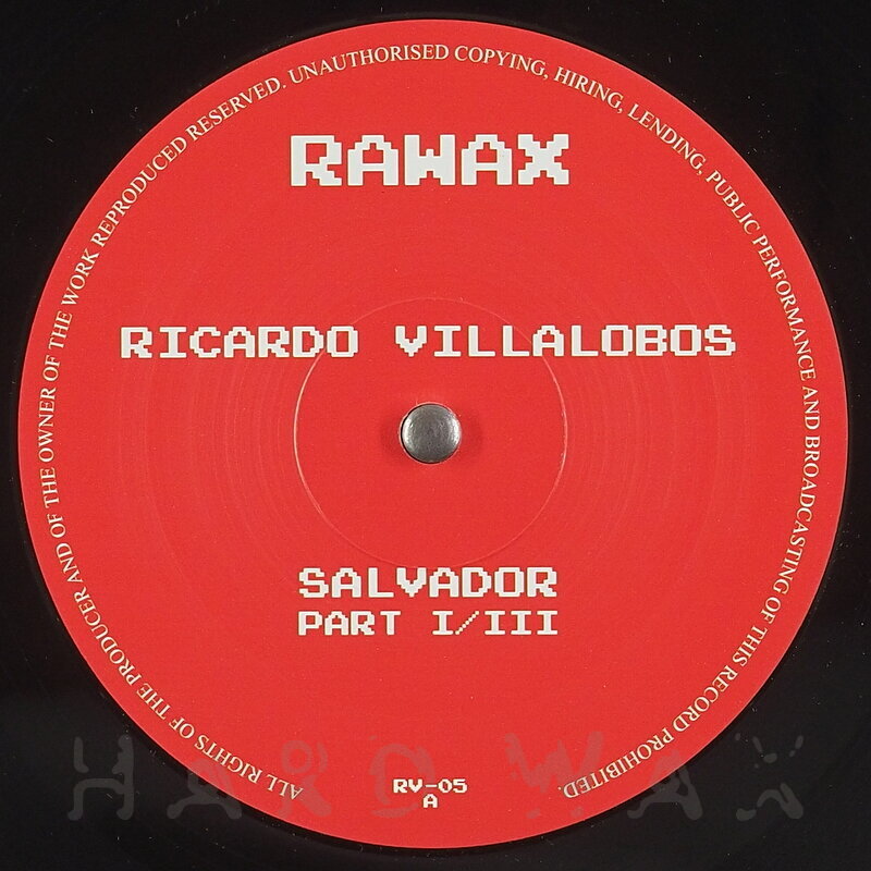 12"—12" € 16.5Rawax RV 05Label CatalogRicardo Villalobos: Salvador (Part 1 of 3)Reissue of splendid late-1990s minimalist House groovers A1 Lazer@Present A2 Unflug B1 Tempura