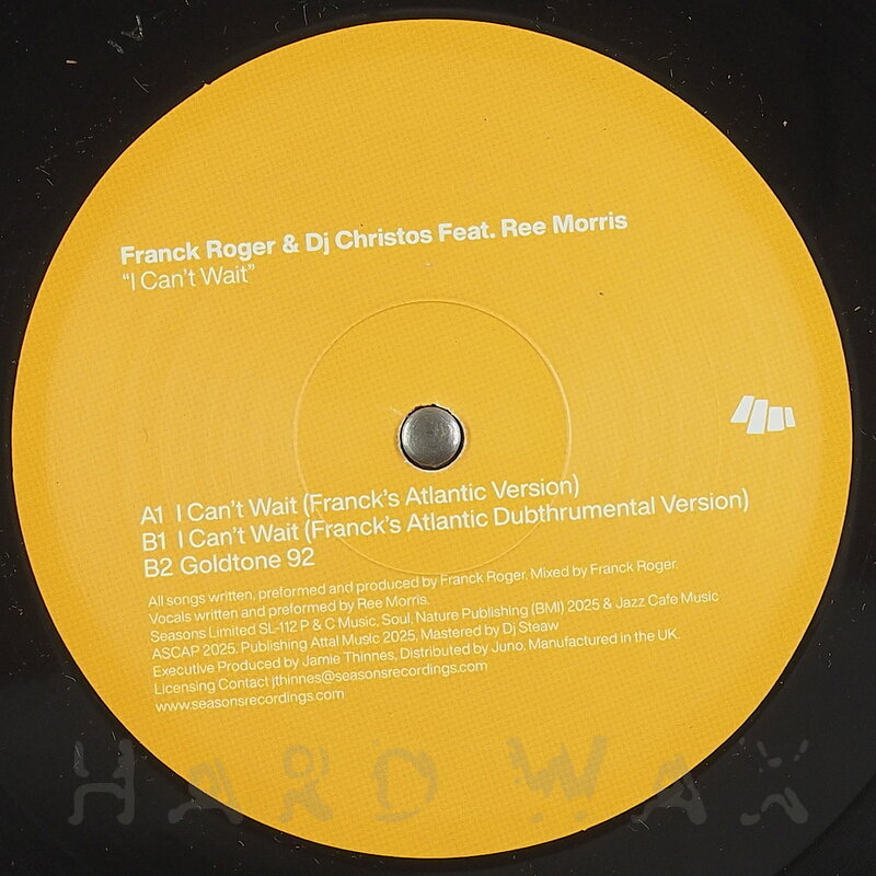 12"—12" € 17Seasons Limited 112Label CatalogFranck Roger: I Can’t WaitQuality US-style deep soulful House A1 I Can’t Wait (Franck’s Atlantic Version) B1 I Can’t Wait (Franck’s Atlantic Dubthrumental Version) B2 Goldtone 92