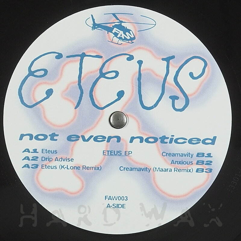12"—12" € 18Fast At Work 003Label CatalogNot Even Noticed: EteusAce, bass driven, atmospheric Tech House / Breakbeat EP A1 Eteus A2 Drip Advise A3 Eteus (K-Lone Remix) B1 Creamavity B2 Anxious B3 Creamavity (Maara Remix)