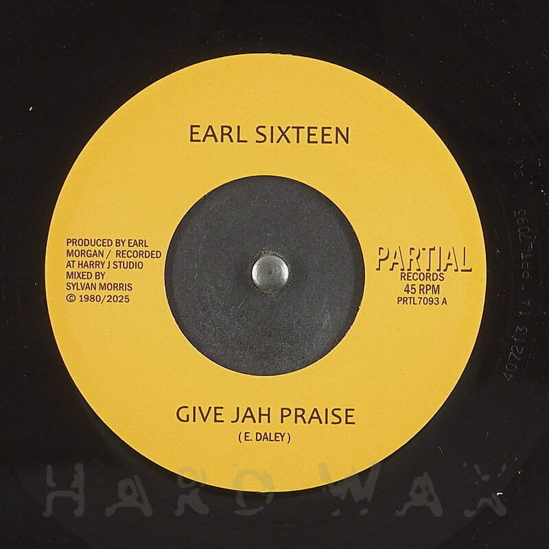 7"—7" € 16Partial 7093Reggae / A46Earl Sixteen: Give Jah PraiseUnearthed early 80s, killer steppers w/ dub mix by Sylvan Morris A1 Give Jah Praise B1 Praising Version