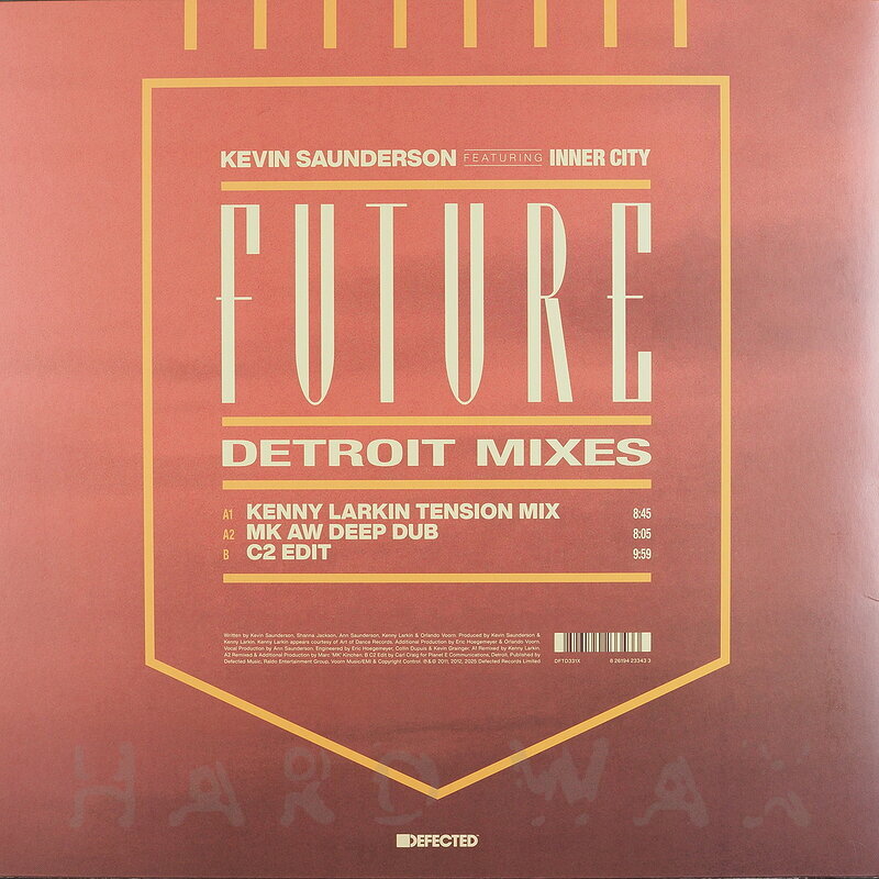 12"—12" € 16Defected 331XLabel CatalogKevin Saunderson ft. Inner City: Future (Detroit Mixes)Kenny Larkin, MK and Carl Craig mixes. Classic Detroit sounds A1 Future (Kenny Larkin Tension Mix) A2 Future (MK AW Deep Dub) B1 Future (C2 Edit)