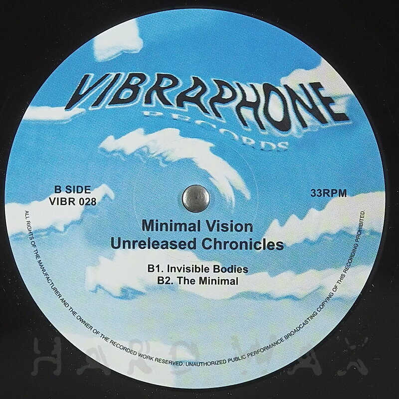 12"—12" € 15Vibraphone 028Label CatalogMinimal Vision: Unreleased ChroniclesExcellent, previously unreleased (Italo) House class A1 Spiritual Atlas A2 Done & Up B1 Invisible Bodies B2 The Minimal