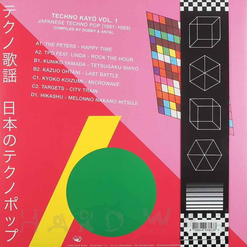 Do LP—Do LP € 37Rush Hour JPN 013Label CatalogVarious Artists: Techno Kayō Vol. 1 - Japanese Techno Pop 1981-1989Compilation of 1980s Japanese Electro-Pop / proto-Techno gems 01 The Peters: Happy Time 02 TPO Feat. Linda: Rock The Hour 03 Kuniko Yamada: Tetsugaku Shiyo (Viens Philosopher) 04 Kazuo Ohtani: Last Battle 05 Kyoko Koizumi: Microwave 06 Targets: City Train 07 Hikashu: Melonno Nakano Hitsuji