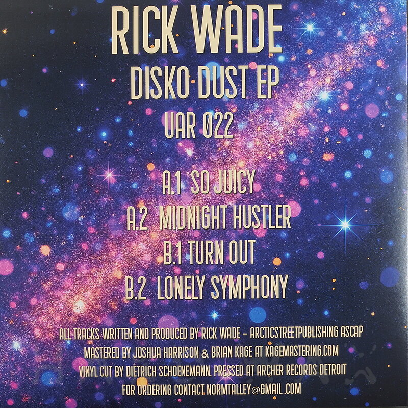 12"—12" € 18Upstairs Asylum 022Label CatalogRick Wade: Disco Dust EPEssential Detroit House with 60s / 70s vibe A1 So Juicy A2 Midnight Hustler B1 Turn Out B2 Lonely Symphony
