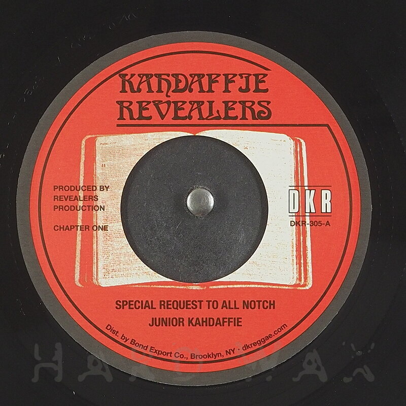 7"—7" € 12.5Kahdaffie Revealers DKR 305Reggae / L09Junior Kahdaffie: Special Request To All Notch7" reissue of sought-after mid 80s NYC rub a dub biz A1 Special Request To All Notch B1 Special Effects Version