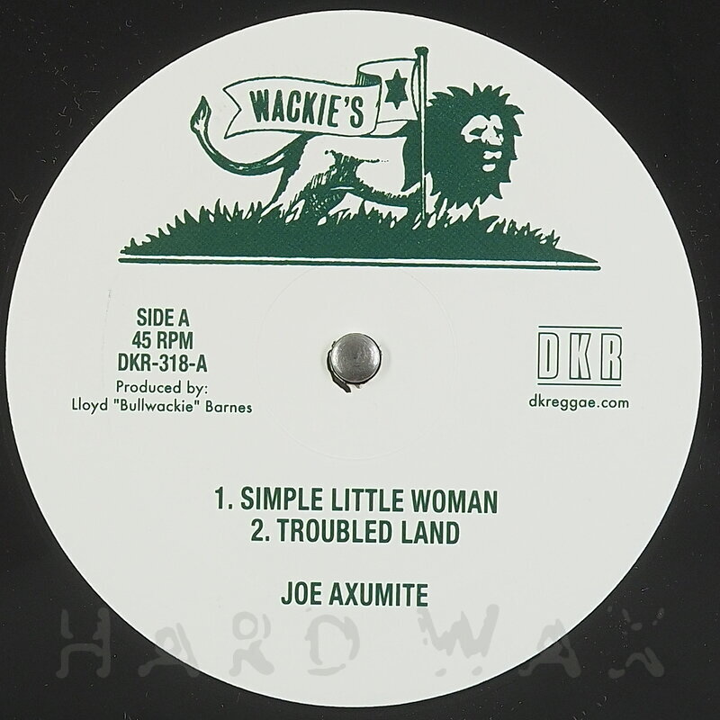 12"—12" € 16Wackies DKR 318Reggae / L01Joe Axumite: Simple Little WomanUpdated 12" reissue here of the previous 10" release coming w/ new different mix A1 Simple Little Woman A2 Troubled Land B1 Home To Africa B2 Version