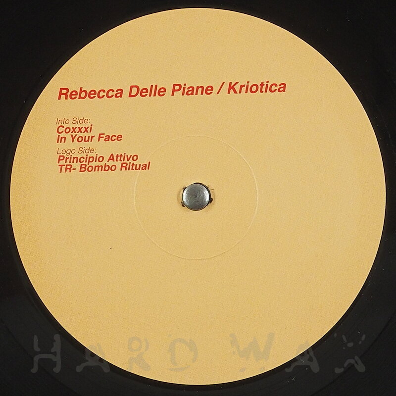 12"—12" € 11Key Vinyl 053Label CatalogRebecca Delle Piane: KrioticaRaw, forward & relentless Techno tracks A1 Coxxxi A2 In Your Face B1 Principio Attivo B2 TR- Bombo Ritual