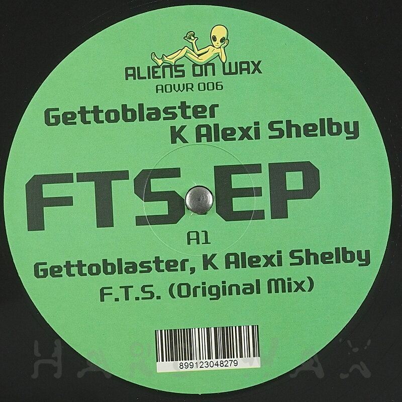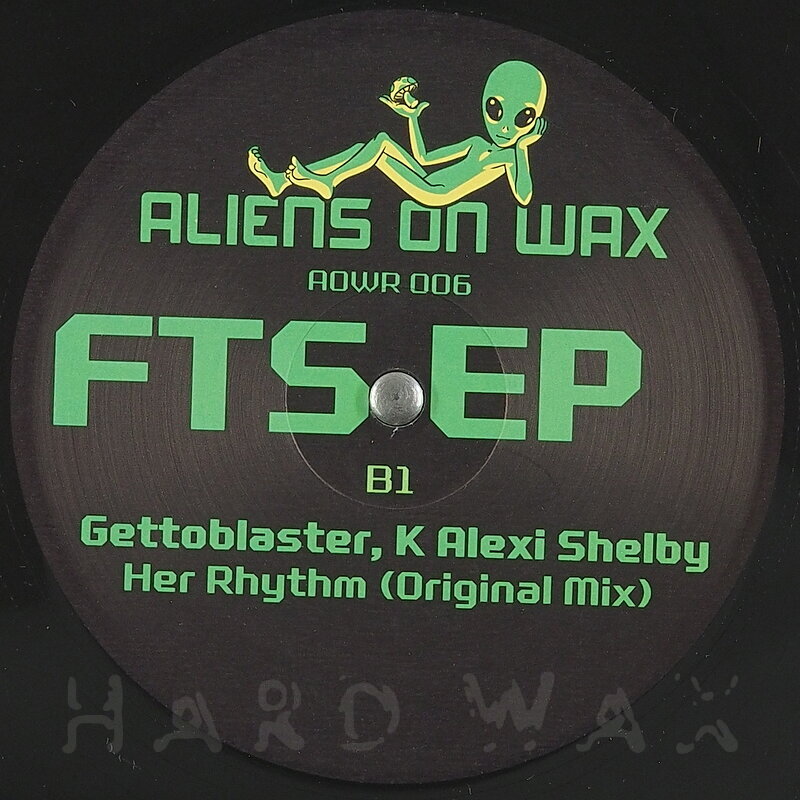 12"—12" € 20Aliens On Wax 006Label CatalogGettoblaster & K Alexi Shelby: F.T.S. EPPeak-hour Chicago Ghetto/Acid Techno A1 F.T.S. (Original Mix) B1 Her Rhythm (Original Mix)