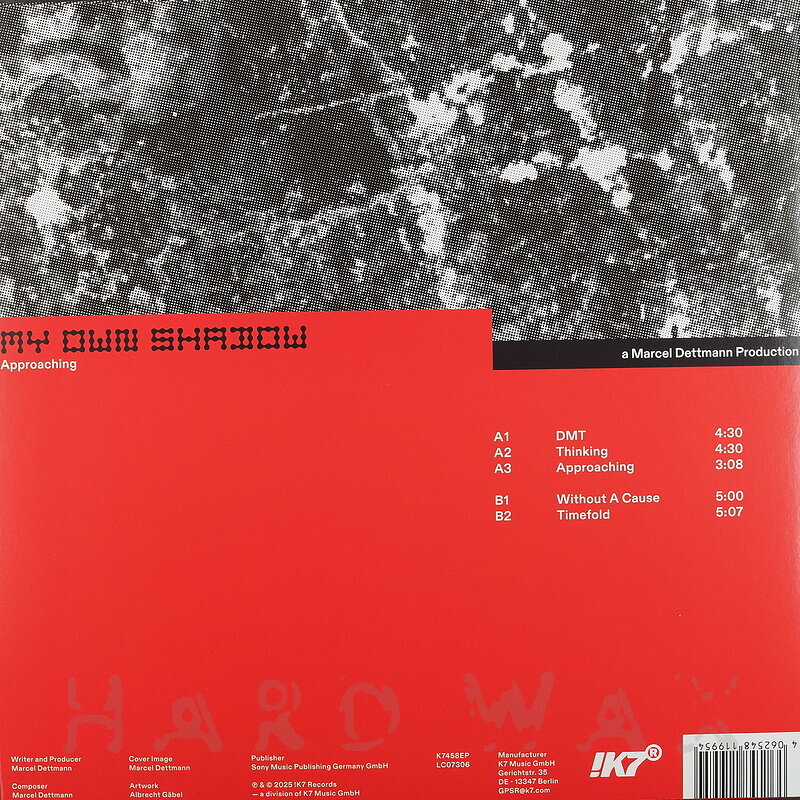 12"—12" € 20K7 458 EPLabel CatalogMarcel Dettmann: My Own Shadow: ApproachingExpressive & immversive Techno / Ambient EP A1 DMT A2 Thinking A3 Approaching B1 Without A Cause B2 Timefold