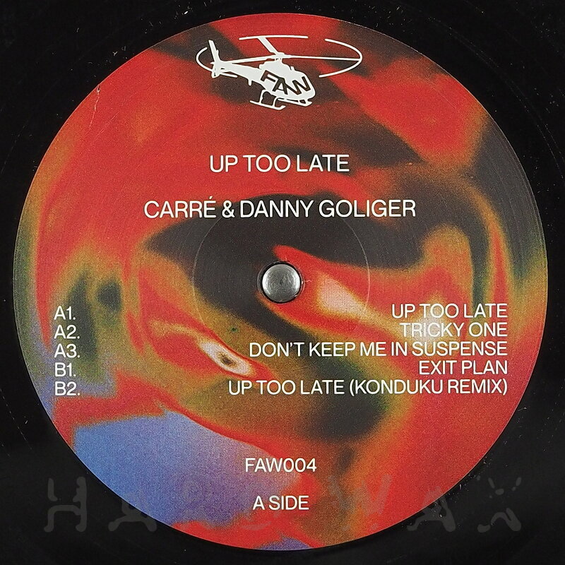12"—12" € 17.5Fast At Work 004Label CatalogCarré & Danny Goliger: Up Too LateAmazing exploring, rhythmic, sound textured Techno hypnotics A1 Up Too Late A2 Don’t Keep Me in Suspense A3 Tricky One B1 Exit Plan B2 Up Too Late (Konduku Remix)
