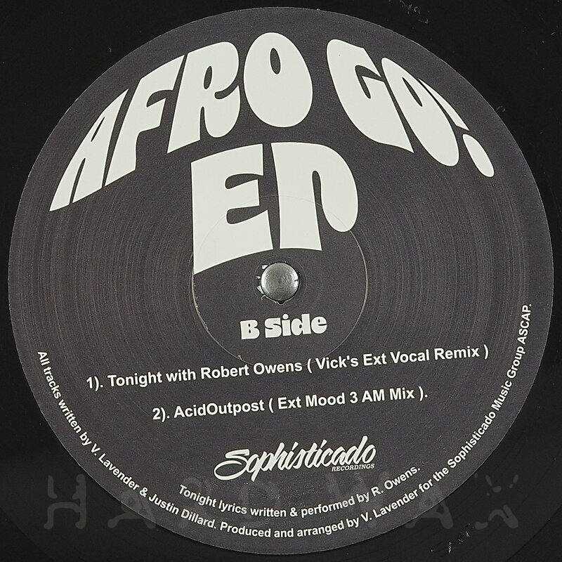 12"— out of stockSophisticado 004Label CatalogVick Lavender: Afro Go! EPFunky percussive jazz house A1 Afro Go! (Vick’s Jazz Playground Ext Mix) A2 Ambrosia (Vamp Funk Mix) B1 Tonight with Robert Owens (Vick’s Ext Vocal Remix) B2 AcidOutpost (Ext Mood 3 AM Mix)