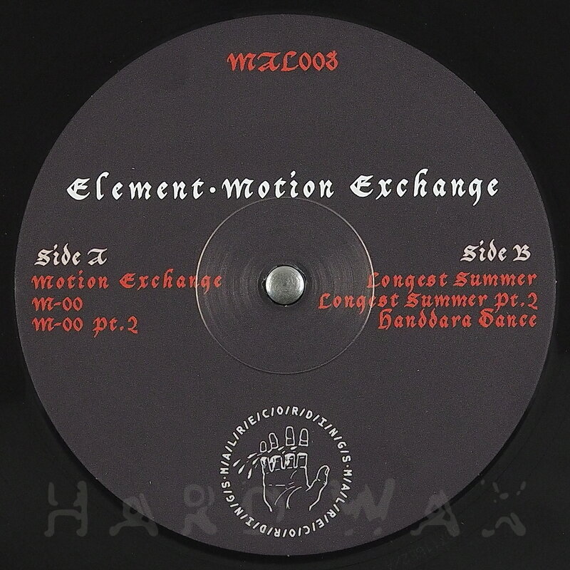 12"—12" € 16.5MAL 008Label CatalogElement: Motion ExchangeCurrent Shaka echoing electronic Dub steppers A1 Motion Exchange A2 M-00 A3 M-00 Pt. 2 B1 Longest Summer B2 Longest Summer Pt. 2 B3 Handdara Dance