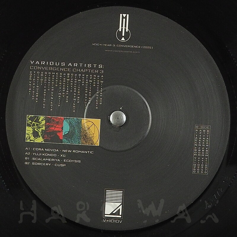 12"—12" € 14.5Void+1 010 VLabel CatalogVarious Artists: Convergence Chapter 3Fine pretty raw Techno mini compilation A1 Cora Novoa: New Romantic A2 Yuji Kondo: XG B1 Scalameriya: Ecdysis B2 Sorcery: Cusp