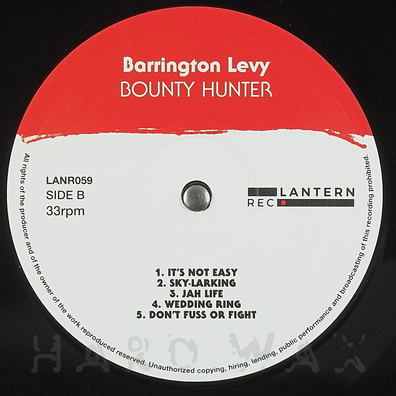 LP—LP € 33Lantern 059Reggae / A35Barrington Levy: Bounty HunterReissue of landmark vocal set produced in the late 70s w/ the Roots Radics & Scientist at King Tubby's A1 Bounty Hunter A2 Shaolin Temple A3 Shine Eye Girl A4 Moonlight Lover A5 Trod With Jah Jah B1 It's Not Easy B2 Sky-Larking B3 Jah Life B4 Wedding Ring B5 Don't Fuss Or Fight