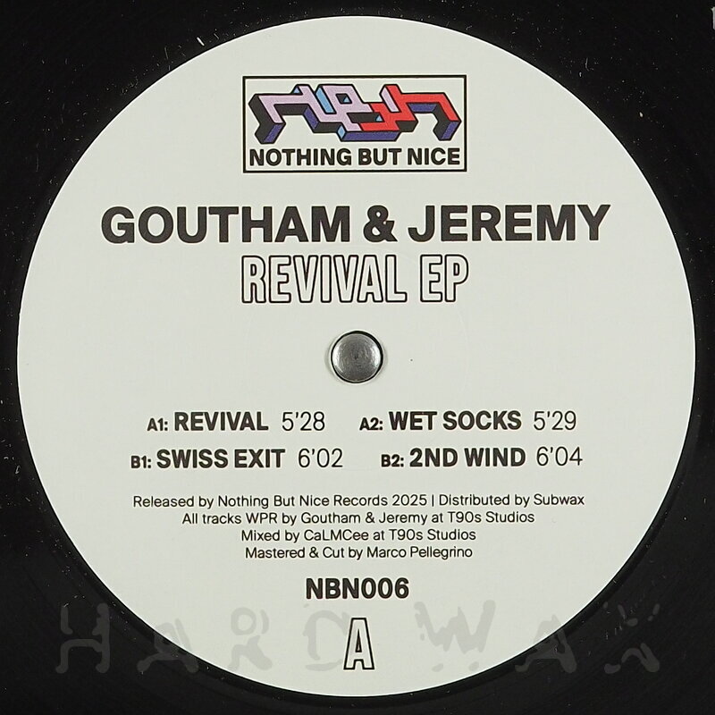 12"— out of stockNothing But Nice 006Label CatalogGoutham & Jeremy: Revival EPDelightful, warm & grooving UK Tech House bliss A1 Revival A2 Wet Socks B1 Swiss Exit B2 2nd Wind