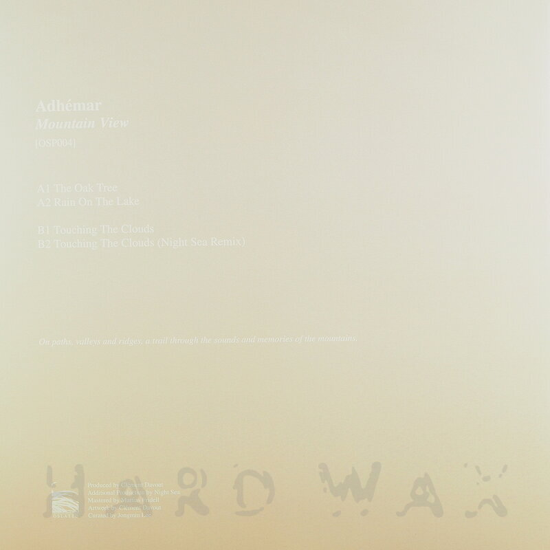 12"—12" € 22Oslated 004Label CatalogAdhémar: Mountain ViewMesmerizing, organic, percussive, warm & tripped out Downtempo / Ambient EP A1 The Oak Tree A2 Rain On The Lake B1 Touching The Clouds B2 Touching The Clouds (Night Sea Remix)