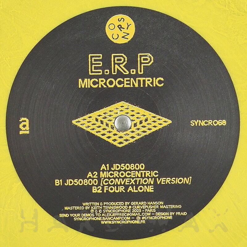 12"—12" € 18Syncrophone 068Label CatalogE.R.P.: MicrocentricDeep atmospheric Techno/Electro A1 5080 JD 800 A2 Microcentric B1 5080 JD 800 (Convextion Remix) B2 Four Alone