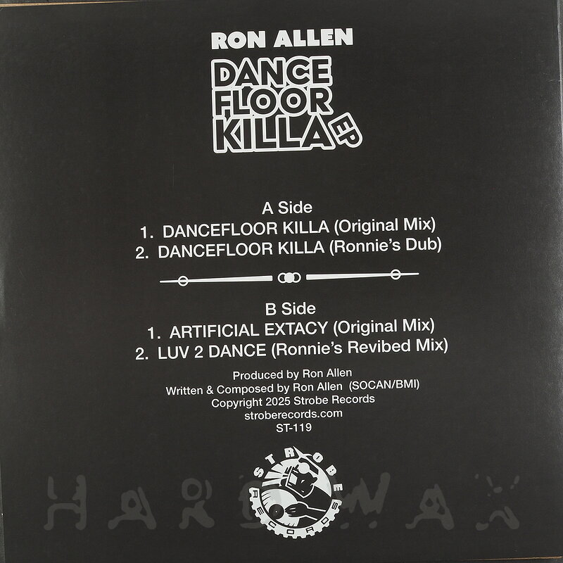 12"—12" € 23Strobe 119Label CatalogRon Allen: Dancefloor Killa EPThe iconic Strobe Records from early 90s is back. Gritty Dub Techno A1 Dancefloor Killa A2 Dancefloor Killa (Ronnie's Dub) B1 Artficial Extacy B2 Luv 2 Dance (Ronnie's Revibed Mix)