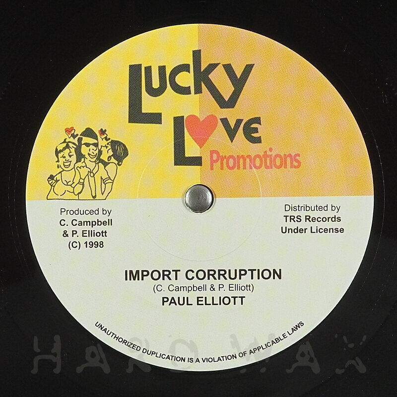 7"—7" € 15Lucky Love Productions TRS LL 1Reggae / C9Paul Elliott: Import CorruptionClassy, late 90s digi roots produced by The Firehouse Crew A1 Import Corruption B1 Version