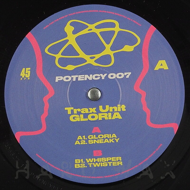 12"—12" € 20Potency 007Label CatalogTrax Unit: GloriaFloor friendly UK House tunes A1 Gloria A2 Sneaky B1 Whisper B2 Twister