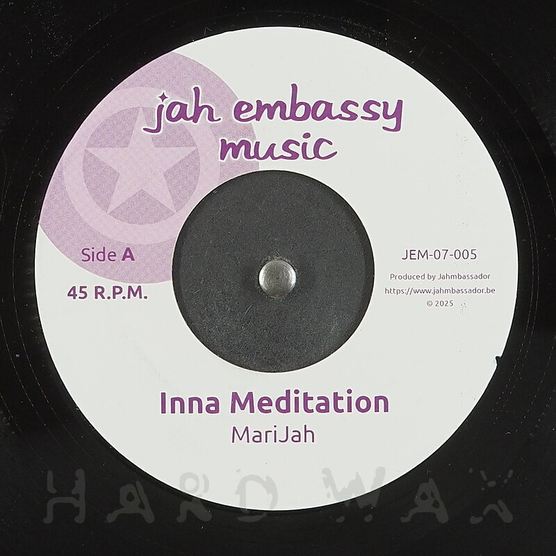 7"—7" € 15.5Jah Embassy Music 07-005Reggae / C1Marijah: Inna MeditationNext cut to "Time Is Now", current sound system deepness A1 Inna Meditation B1 Inna dub