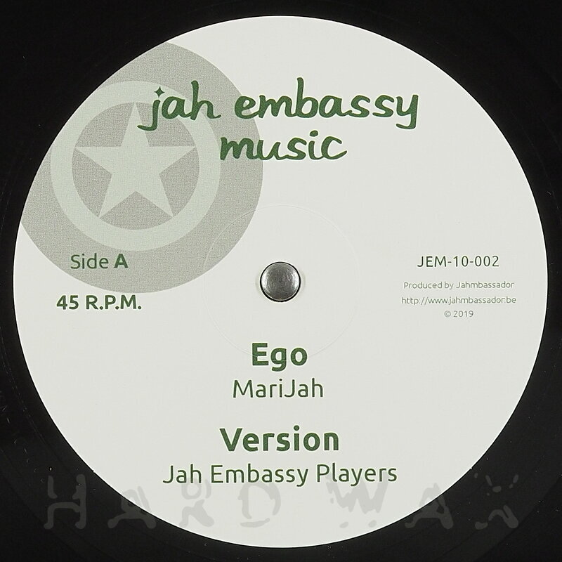 10"—10" € 20Jah Embassy Music 10-002Reggae / C1Marijah: EgoReissue of modern roots stepper produced in 2019 A1 Ego A2 Jah Embassy Players: Version B1 Irie Ilodica: Humble Rock B2 Jah Embassy Players: Version